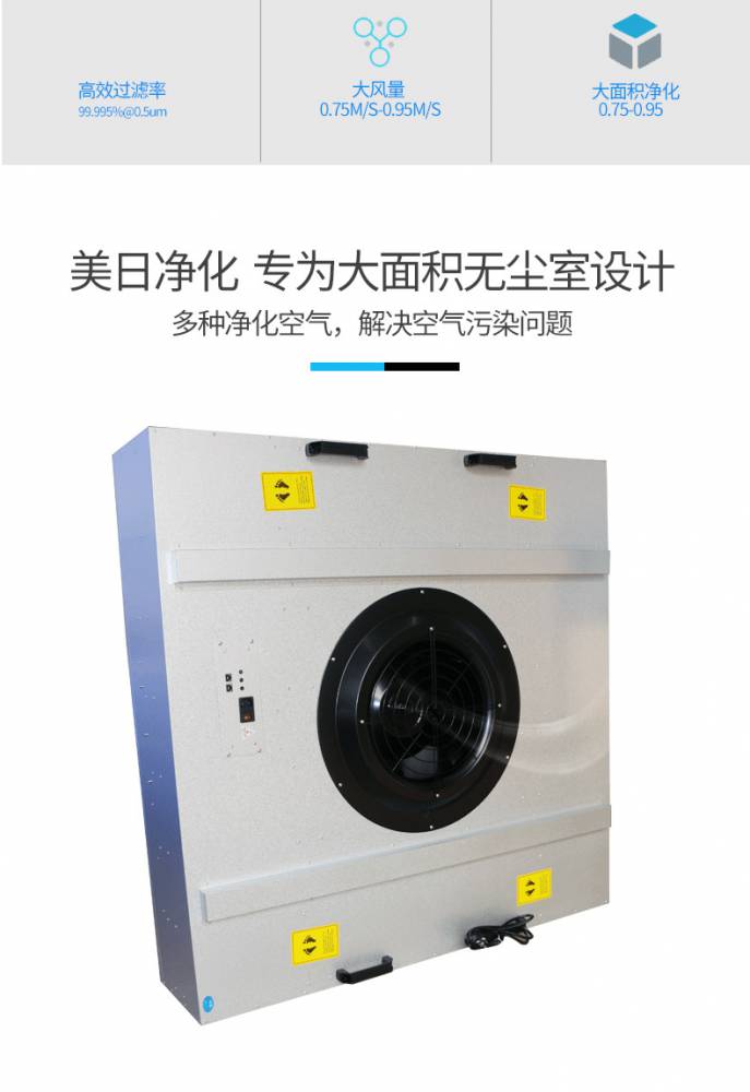 FFU風(fēng)機(jī)過(guò)濾機(jī)組控制采用其公司開(kāi)發(fā)之非接觸感應(yīng)式三檔調(diào)速,電路均采用電器開(kāi)關(guān)控制,控制安全平穩(wěn)。彈性、多元化配置除標(biāo)準(zhǔn)機(jī)型外,可根據(jù)客戶需求,制作不同規(guī)格的非標(biāo)產(chǎn)品。如:風(fēng)管連接法蘭、濾網(wǎng)、箱體材質(zhì)等變更。人性化設(shè)計(jì)機(jī)組附裝不銹鋼把手,使搬運(yùn)及安裝更為方便快捷。