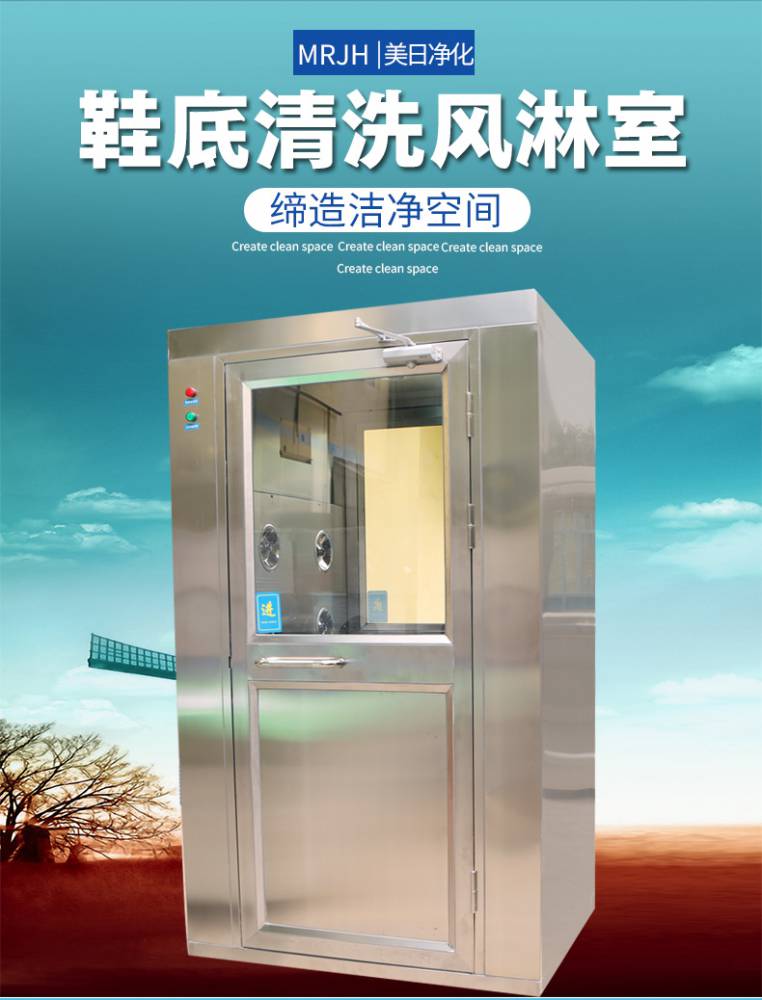 風(fēng)淋室是一種通用性較強(qiáng)的局部?jī)艋O(shè)備,安裝于潔凈室與非潔凈室之間。當(dāng)人與貨物要進(jìn)入潔凈區(qū)時(shí)需經(jīng)風(fēng)淋室吹淋,其吹出的潔凈空氣可去除人與貨物所攜帶的塵埃,能有效的阻斷或減少塵源進(jìn)入潔凈區(qū)。風(fēng)淋室/貨淋室的前后兩道門(mén)為電子互鎖,又可起到氣閘的作用,阻止未凈化的空氣進(jìn)入潔凈區(qū)域。