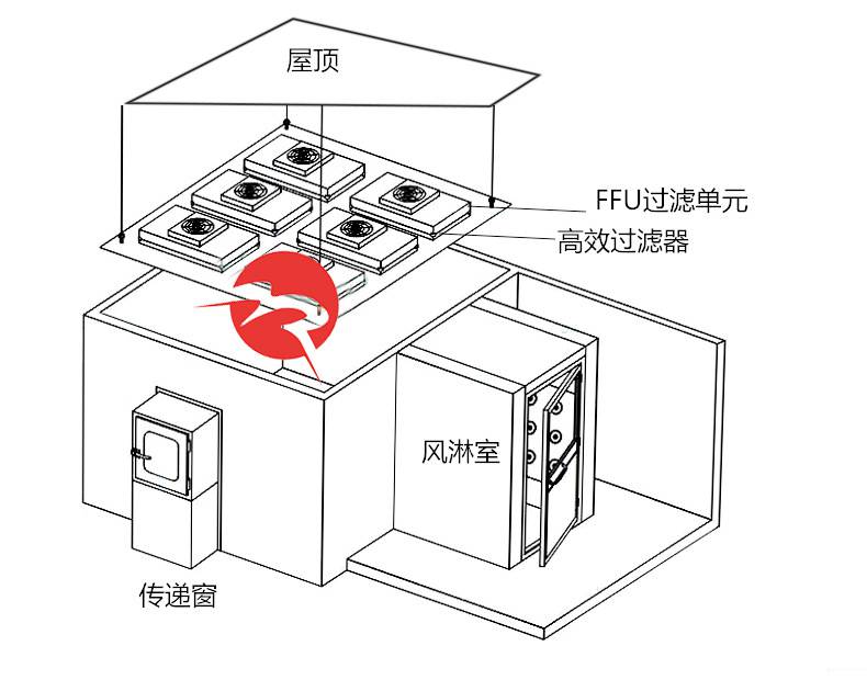 ⒍采用有隔板高效過濾器,過濾效率為:99.99%,確保凈化級(jí)別。