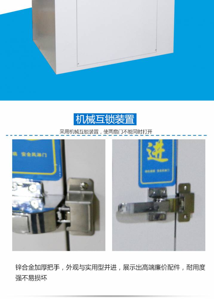 ⒊兩側(cè)門設(shè)有機(jī)械互鎖或電子互鎖、電子碰鎖裝置,確保兩側(cè)門不能同時(shí)處于開啟狀態(tài)。