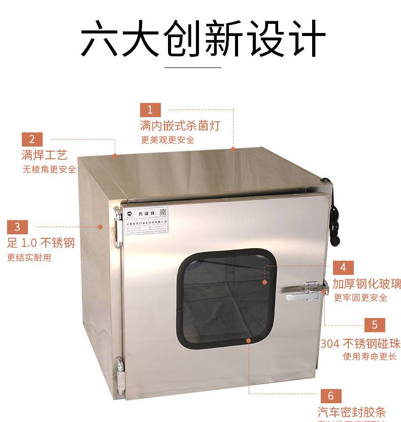 ⒈短距離傳遞窗工作臺(tái)面采用不銹鋼板,平整光潔耐磨