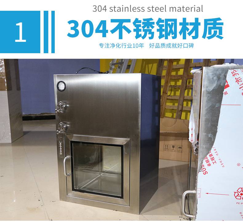 ⒈短距離傳遞窗工作臺面采用不銹鋼板,平整光潔耐磨
