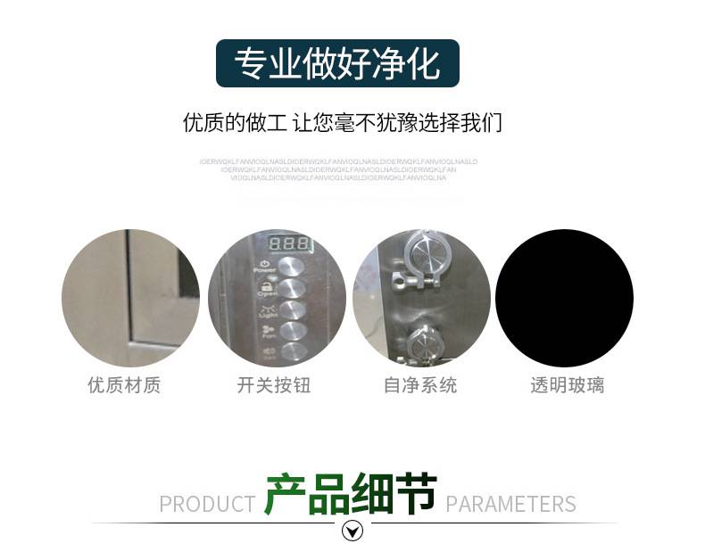 ⒍采用有隔板高效過濾器,過濾效率為:99.99%,確保凈化級別。