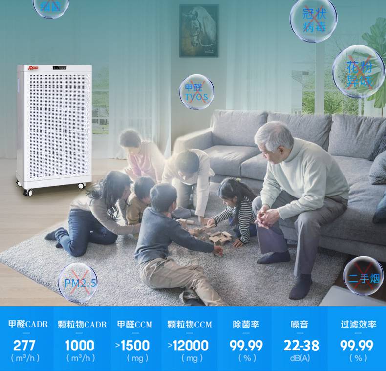 每日凈化空氣凈化器,紫外線快速殺菌、快速除甲醛、PM2.5、過濾煙塵、殺滅細菌和病毒、清除異味、降解有毒化學氣體、凈化清新空氣、呵護人體健康等;多檔風速、多向氣流、及低噪音等。